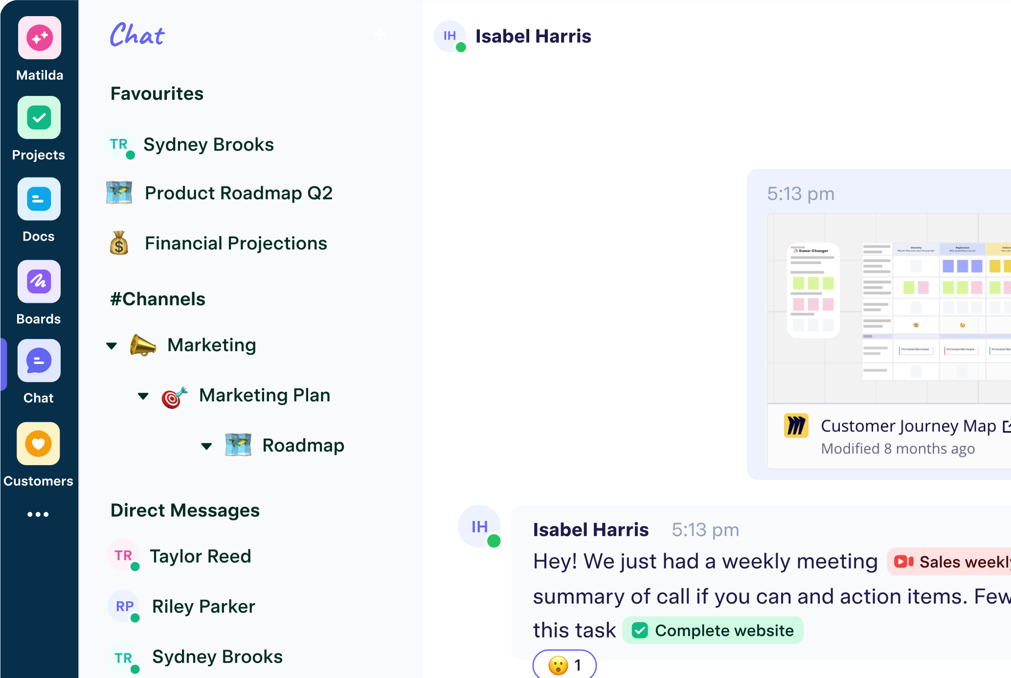 Coming from HubSpot, Salesforce, Asana, Notion, Slack? Import contacts, deals, projects, and docs in minutes. We’ll migrate your first workspace for free.